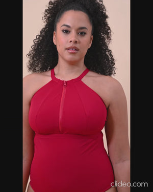 Introducing our amazing Zip Tide Swimsuit, now available in Red! Offering both comfort and versatility with its adjustable coverage and stylish design, this fully-lined, non-wired swimsuit features a stunning sculpting high neck based on our Scantilly Indulgence body shape, and a zip-up feature for a chic and customizable look.