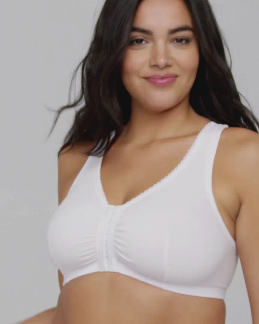 This bra has a breathable T-back, a gorgeous lace design, and comfortable cotton fabric. With size-adjusting stretch and an adjustable front closure, it's hard not to get excited about slipping into something so comfy — especially while spending days at home.