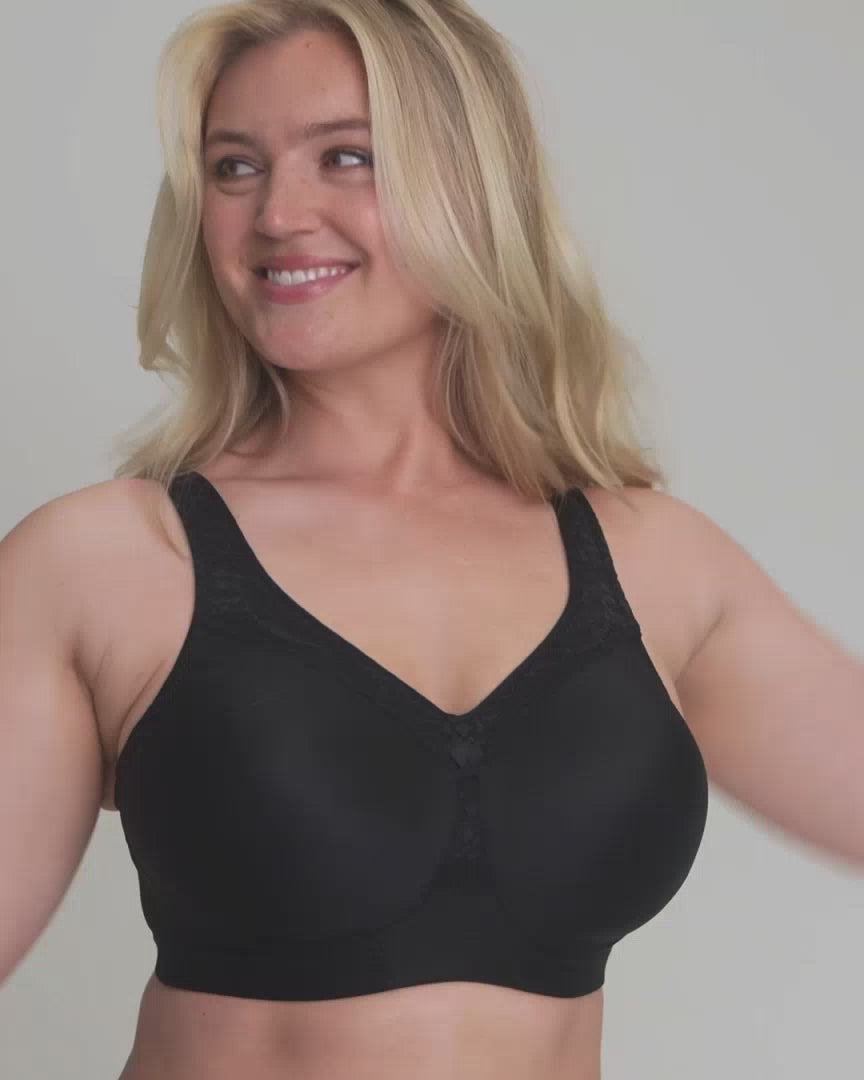 Meet your new favorite everyday bra. With Glamorise's signature MagicLift wireless design, seamless cups, and gorgeous lace detailing, this T-shirt bra is an high comfort take on a tried-and-true design.