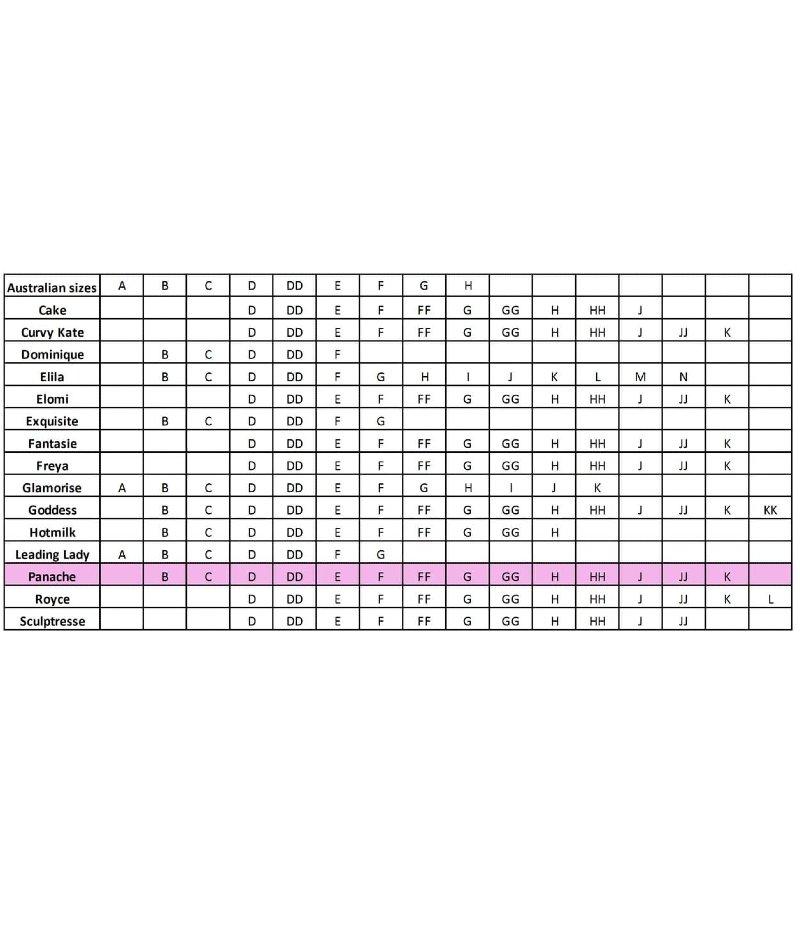 Brand Guidance: Panache is a UK brand and it fits smaller in the band than most brands (eg Elomi, Triumph, Berlei, Glamorise etc).