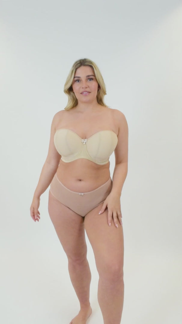 NEW COLOUR ALERT! 'The Best Supporting Act' goes to... The award winning Curvy Kate Luxe Cocoa Strapless Bra! This is the best strapless made for big boobs – the seamed cups offer lift and shape, as the band hugs your curves without the worry of slipping.