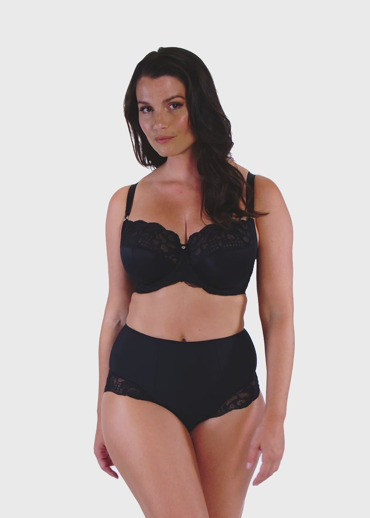 - Powerful stretch lace top cup with increased elastane content to offer better support and shape