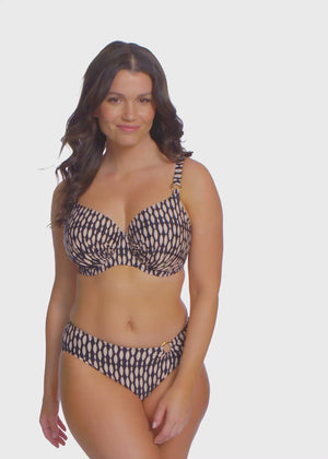 Feel supported and sun-ready with Shell Bay. Featuring a graphic design, in a black and muted blush pairing, for an elevated pool side look. Subtle design details complete this collection with its hammered effect gold ring detailing. For swimwear that feels as good as it looks – choose Fantasie Swim.