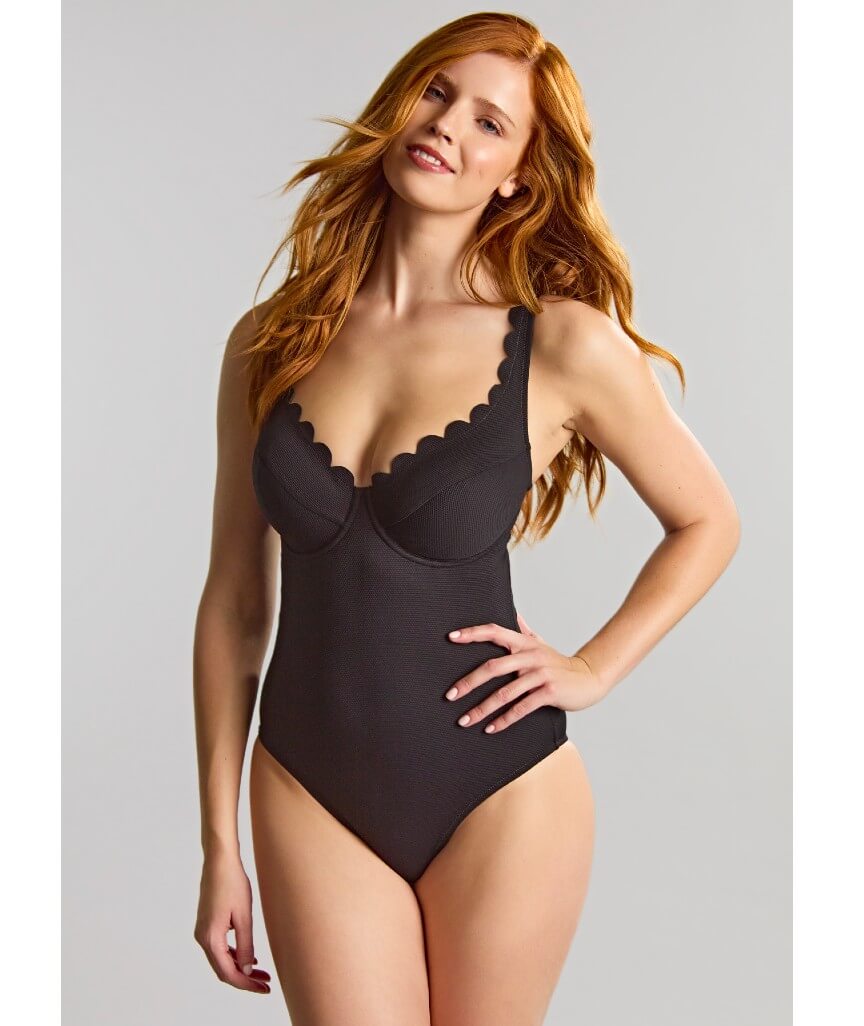 Introducing our new Spirit range to the Panache Swim collection - full of timeless silhouettes in a luxurious Spanish honeycomb textured fabric, this collection epitomises classic chic. The Rita Plunge Swimsuit features a plunging neckline that adds a touch of glamour, while the scalloped edges bring a playful charm to the design. Whether lounging by the pool or strolling along the beach, you'll feel effortlessly chic and comfortable in this classic black swimsuit.